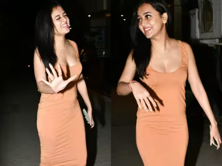 तस्वीरों में तेजस्वी ऑरेंज कलर की डीपनेक आउटफिट पहने हुए सैलून से बाहर आती दिखाई दीं.
