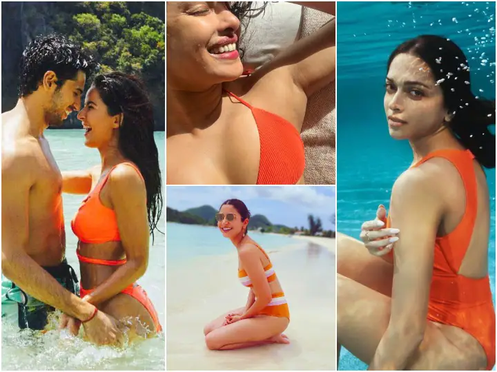 दीपिका से पहले एक्ट्रेस अनुष्का शर्मा भी सैफ्रॉन कलर की बिकिनी में आग लगाती नजर आई थीं, 2019 में अनुष्का शर्मा ने अपने बीच वेकेशन की एक झलक शेयर की थी, उन्होंने ऑरेंज और व्हाइट स्ट्राइप्ड बिकिनी में खूबसूरत पोज दिए.
