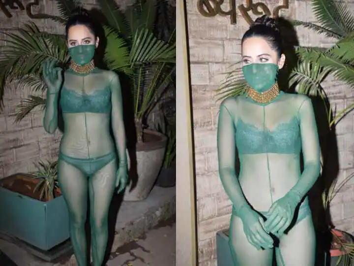 ट्रांसपेरेंट ग्रीन आउटफिट में उर्फी जावेद अपनी ग्रीन बिकिनी फ्लॉन्ट करती नजर आ रही हैं.
