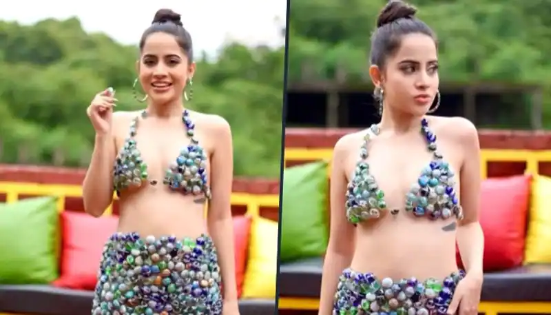 On Saturday, Urfi Javed shared a fresh video of her fashion take. The actor used mutli-coloured stones to create an outfit of a bralette and a skirt.