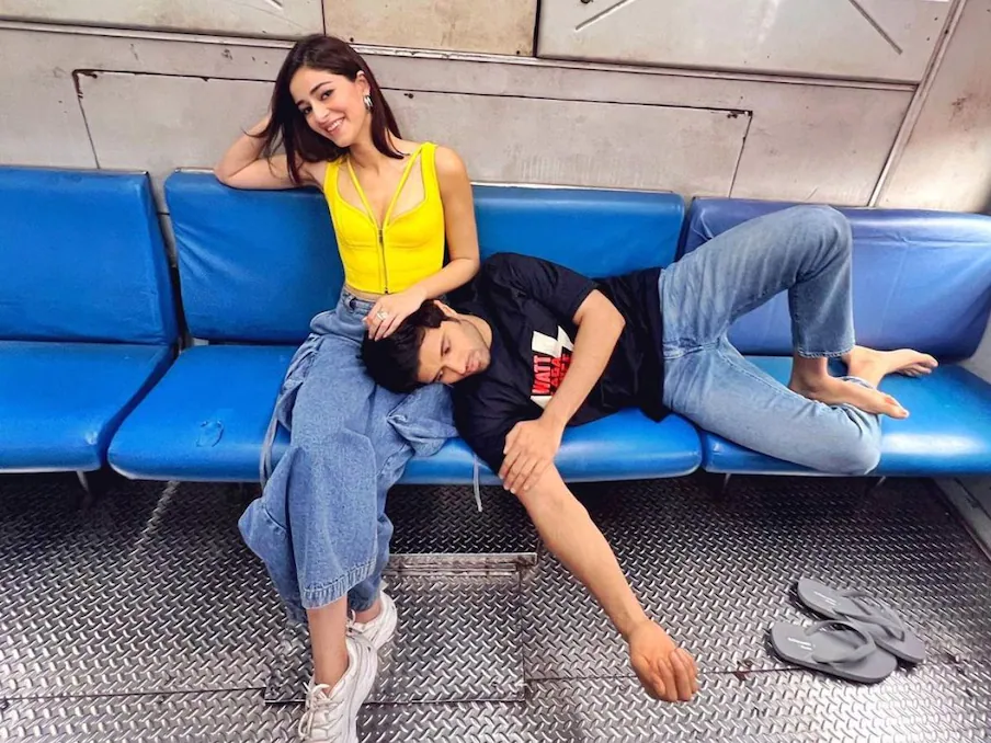 In this picture you can see Vijay Deverakonda resting on the lap of Liger co-star Ananya Pandey on the seat of a local train.
