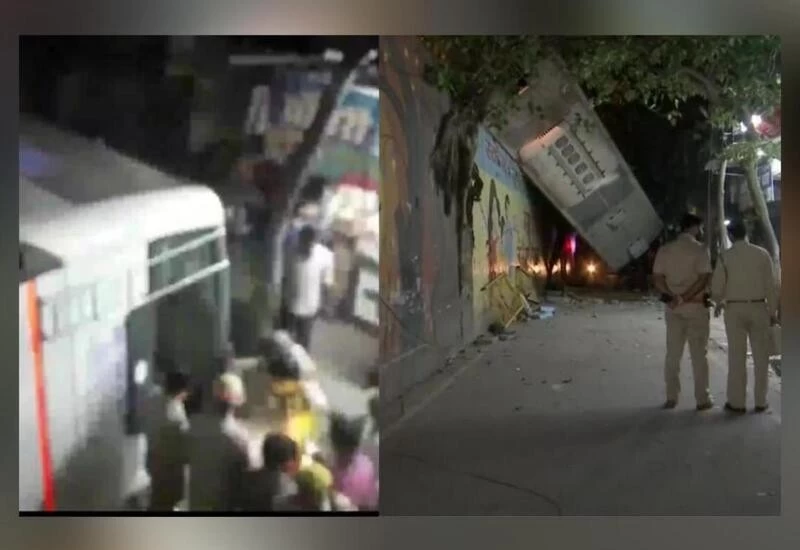 The police said that around two two-wheelers got trapped under the bus when it fell from the flyover.