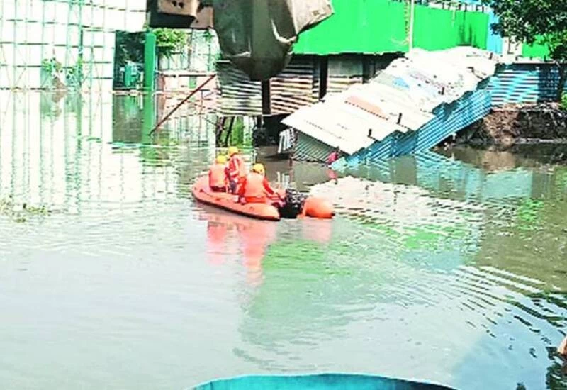 NDRF Commandant P K Srivastava said, “Around 8.30 am, the water level in the drain suddenly increased and it carried some debris, which caused erosion along the edges of the drain. This caused one of the houses to collapse and damaged a few other houses.”