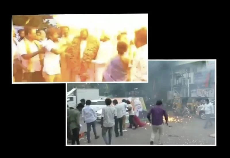 “While the people welcomed Muthuraman with garlands, the crackers were bursting in the background. One flame from the cracker hit the hydrogen balloon and the entire set exploded,” said the police officer. The people were rushed to the Kilpauk Medical College and Hospital with burn injuries. The Korattur police registered a case and said that they all suffered minor injuries.