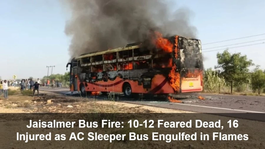 A tragic incident unfolded on Tuesday afternoon when an AC sleeper bus travelling from Jaisalmer to Jodhpur caught fire near Thaiyat village on the Jaisalmer-Jodhpur Highway. The blaze, suspected to be caused by a short circuit, rapidly engulfed the bus around 3:30 PM, turning it into a raging inferno, while passengers, in a desperate attempt to save their lives, jumped from the moving vehicle, leading to widespread chaos and injuries. Assistant Fire Officer Krishnpal Singh Rathore stated that 10-12 people are feared to have died in the incident, trapped inside the burning bus. On top of that, 16 passengers, including three children and four women, sustained severe burn injuries. Most of the injured are reported to have suffered up to 70% burns. The bus was carrying a total of 57 passengers.