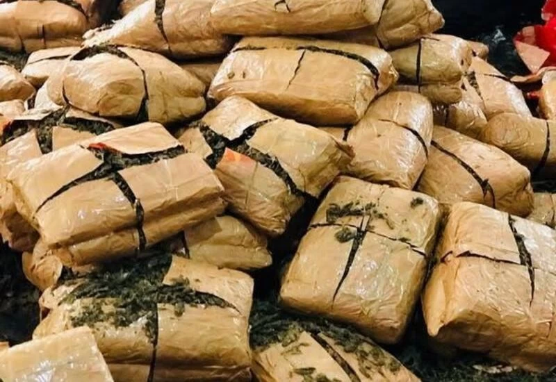 After a detailed examination of the cargo area of the container truck, they unearthed several bags of ganja from behind the empty plastic crates. A total of 1,050 kg of ganja with an approximate value of Rs 2.62 crore in the grey market was found.