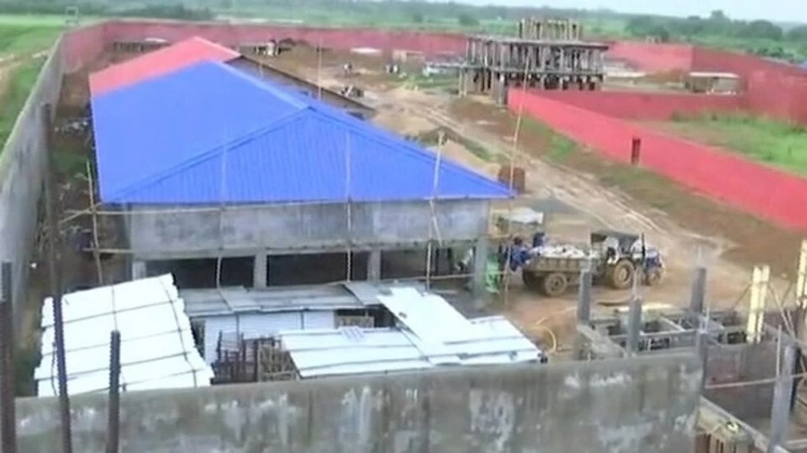Fifteen four-storey buildings are being built in the detention centre -- 13 for men, 2 for women.