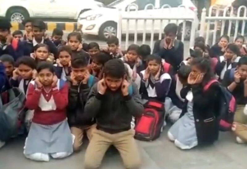However, their schoolmates soon came to their friends' rescue -- gathering outside district magistrate BN Singh's office seeking pardon for the two boys. The students sat with their hands folded, holding their ears outside DM's office in Noida sector 27.