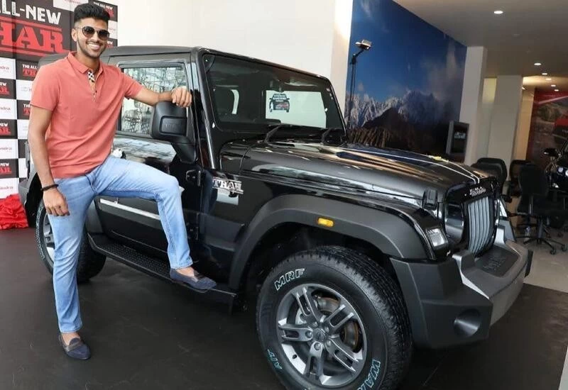 Washington Sundar on Tuesday shared a photo with his new car and wrote "Filled with immense gratitude to Shri @anandmahindra for this wonderful gift & all the encouragement that you provide us youngsters."