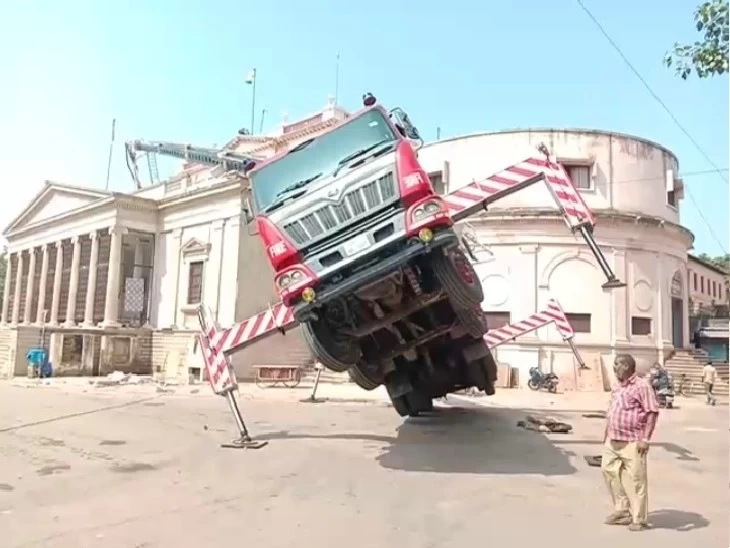 The incident happened when the workers were trying to put up the flag on the post office building while sitting in the trolley of the hydraulic fire brigade of the municipal corporation. The historical buildings built on the Maharaj Bada are decorated every year on the occasion of Independence Day.