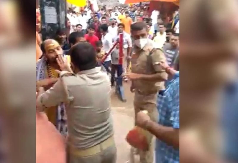 On Sunday, there was a dispute with the philosophy of philosophy on Sunday on the famous mother Vindhivni temple located in Vindhyachal of UP. A local panda (pilgrim priest) stuck to some people to move to the temple premises. He started going to the temple about forcibly environment. On this, the police there prevented them. The controversy over the same thing that the policemen present there was beaten by the panding trying to enter the temple.