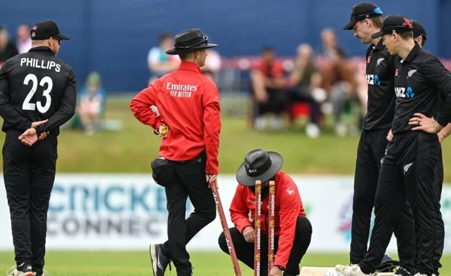 This incident happened during Ireland's innings. New Zealand bowler Blair Tickner was bowling the 43rd over of Ireland's innings and Simi Singh was on strike. The last ball of the over was taken outside by Tickner, who took the outer edge of the bat and reached directly into the hands of wicketkeeper Tom Latham. The umpire also declared Simi out. But during this Simi had some conversation with the umpire, for some time no one understood what was happening on the field. Then the umpire declared him not out.
