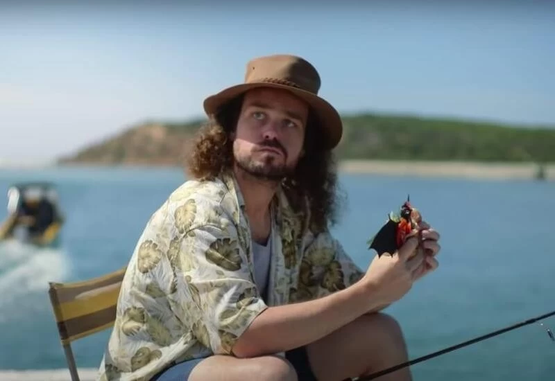 The advertisement shows footage of an Australian family fishing and camping and a coronavirus joke is made about eating a bat sandwich, censored on television.