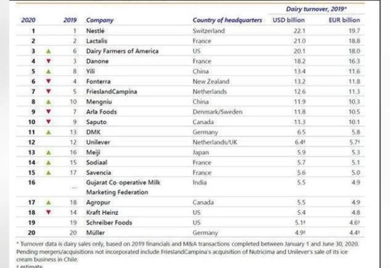 Besides, the list also featured Nestle at the top with an annual turnover of $22.1 billion. Moreover, Dairy Farmers of America jumped 3 positions in the list to secure the 3rd rank with an annual turnover of $20.1 billion.