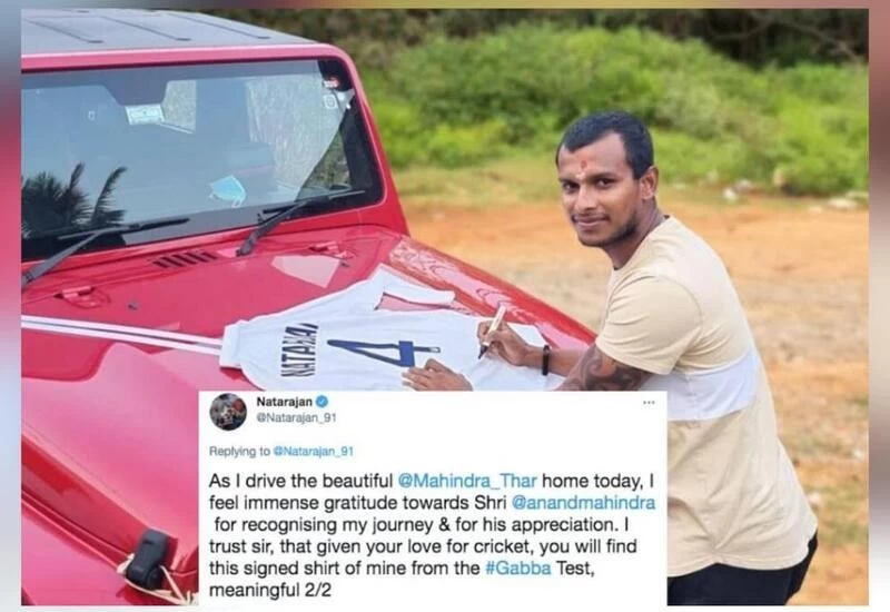 “As I drive the beautiful @Mahindra_Thar home today, I feel immense gratitude towards Shri @anandmahindra for recognizing my journey & for his appreciation. I trust sir, that given your love for cricket, you will find this signed shirt of mine from the #Gabba Test, meaningful,” Natarajan tweeted.