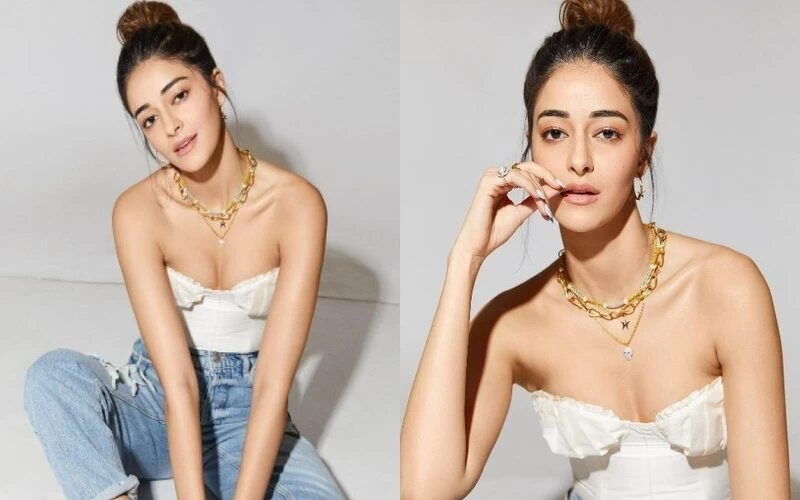 In the pictures that surfaced, Ananya Pandey is wearing an off-shoulder white top. Along with this, the actress is wearing denim jeans and ruddy pink high heels. The hair has been made into a bun and a golden color necklace is worn around the neck. In which she is looking very beautiful. Along with this, the actress has given more than one pose, which is being liked by her fans.