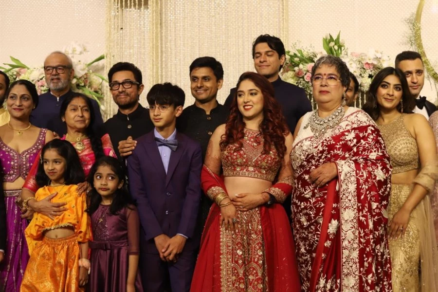 The entire family along with the couple looks very happy at the wedding reception of Ayra and Nupur. Khan and Shikhare family members are seen in the pictures. All the women of the family, seen in saree and lehenga, are looking amazing. The whole family looked very happy on this occasion.