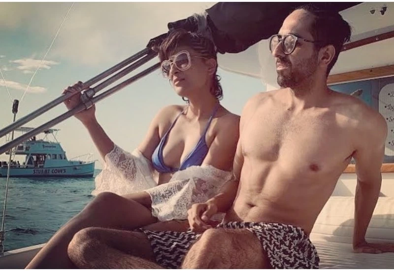 Ayushmann signed off 2019 with a postcard in which he is seen clad in beach shorts flaunting his new hairdo. Sitting on the yacht, he seems to be having the time of his life while his ride carries him through the sea.The Vicky Donor star shared the picture on his Instagram stories and wrote, "Paani da rang badlega 2020 mein." The next picture shows Ayushmann all geared up for a dive in the sea along with the caption," Diving into 2020." He then shared a picture of Tahira, who is engrossed in her phone. He wrote," She says Happy New Year."