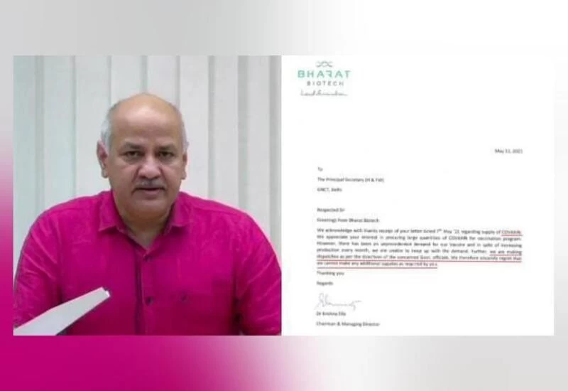 New Delhi: Deputy chief minister of Delhi Manish Sisodia on Wednesday tweeted a letter written by Bharat Biotech in response to his demand that additional vaccines for coronavirus disease (Covid-19) be provided to the national capital, and said that the pharmaceutical company refused to comply citing directives of the central government and limited supply.