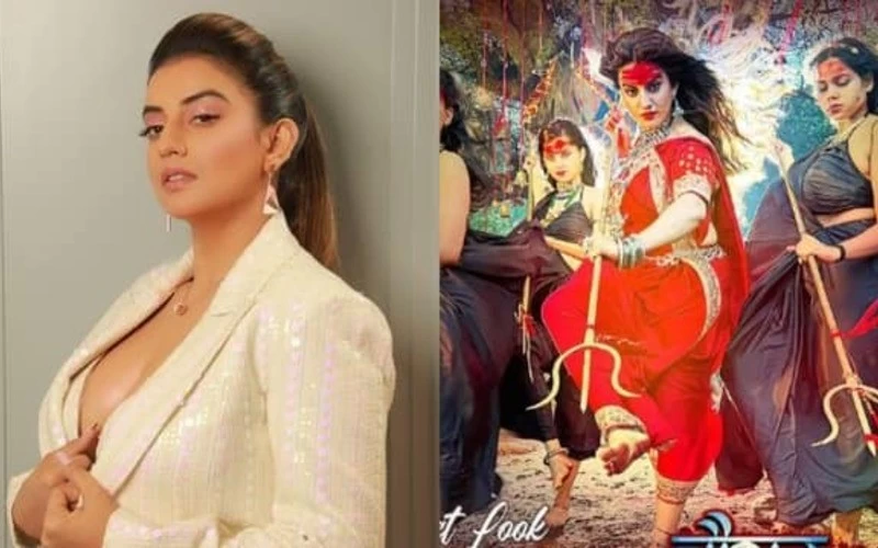 Akshara Singh is being trolled fiercely for this poster of her. The name of this upcoming song of Akshara Singh is 'Chausath Joginiya Mai'. In the poster, Akshara is seen applying vermilion on her forehead and holding a trident in her hands in open hair. Along with him, some other actresses are seen wearing black sari in the same style.