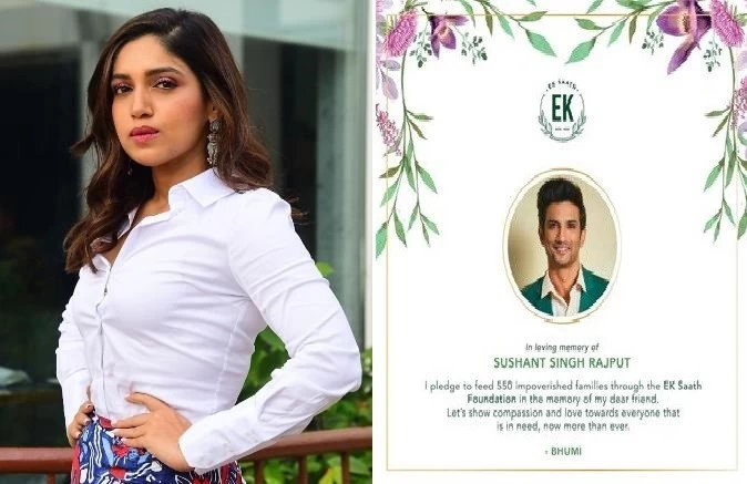 Bhumi Pednekar just took to her social media account and announced that she will be feeding 550 in the memory of co-star from Sonchiriya. She shared a picture message, which read, “I pledge to feed 550 impoverished families through Ek Saath Foundation in the memory of my dear friend. Let’s show compassion and love towards everyone that is in need, now more than ever”