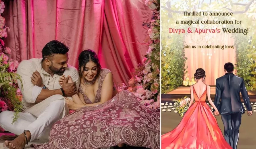 This wedding invitation depicts an animation of Divya and Apoorva Padgaonkar's wedding. Along with this, it is written in a caption, 'Love, laughter and a touch of celebrity magic! Join us in celebrating Divya and Apoorva's wedding, where dreams become reality. With an incredible pairing, this star-studded affair promises a night of happiness and unforgettable memories. Save the date to see a completely different celebration. The thing to note is that even after talking about saving the date, the date has not been mentioned.