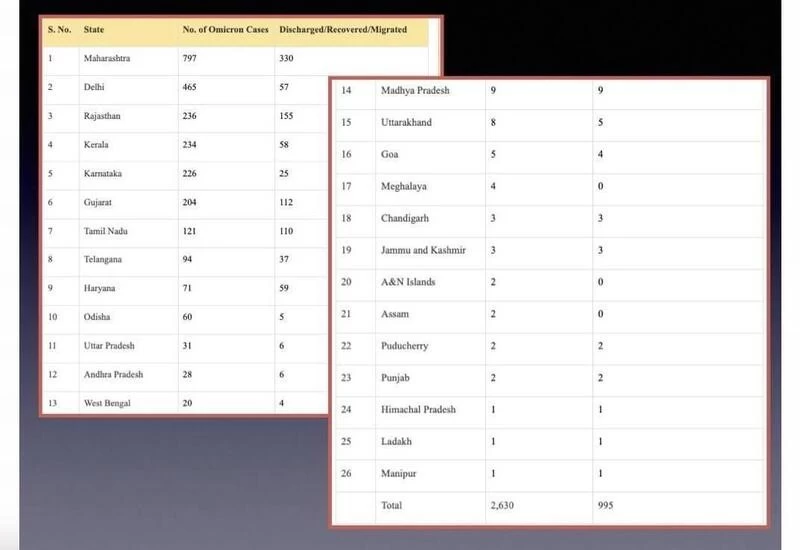 Maharashtra continues to be the leading contributor with 797 Omicron cases, followed by Delhi (465), Rajasthan (236), Kerala (234), Karnataka (226) and Gujarat (204).