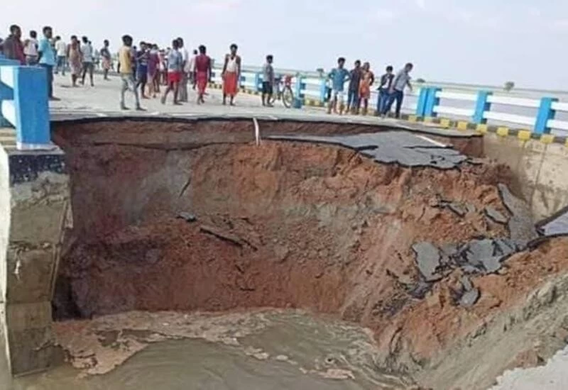 Patna: The Opposition in Bihar on Thursday lashed out at Nitish Kumar-led NDA government after a bridge on the approach road leading to newly-constructed Sattarghat bridge over River Gandak was washed away by flood water, exactly 29 days after it was inaugurated by chief minister himself on June 16.