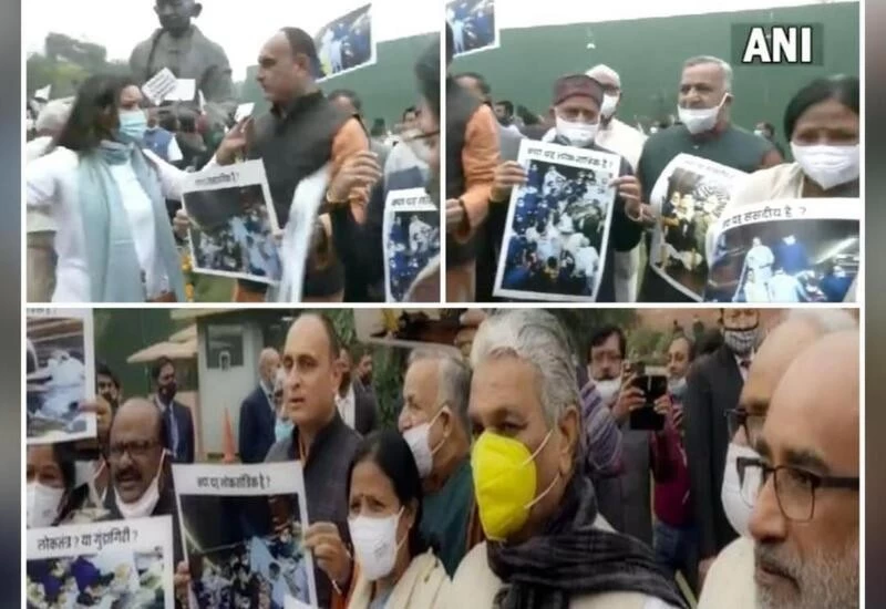 On the other hand, Opposition MPs protested against the suspension of 12 Rajya Sabha MPs.