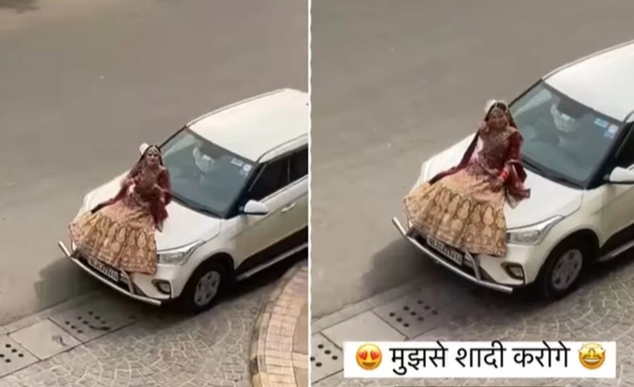 These days a video is becoming increasingly viral on social media. In this video, a bride rides on the bonnet of the car and reaches the groom's house on her wedding day. After this, she does such work from the road itself, seeing that you will also lose your heart. In the video, the bride sits on the bonnet of the car and asks questions to marry the groom in a romantic way. This style of the bride is winning the hearts of the people.