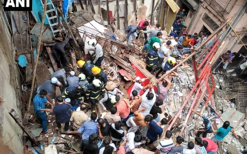 At least twelve people have died and fifty others are still feared trapped under the debris of a building that collapsed today in the Dongri area of Mumbai, Maharashtra Urban Development minister Radhkrishna Vikhe Patil said.