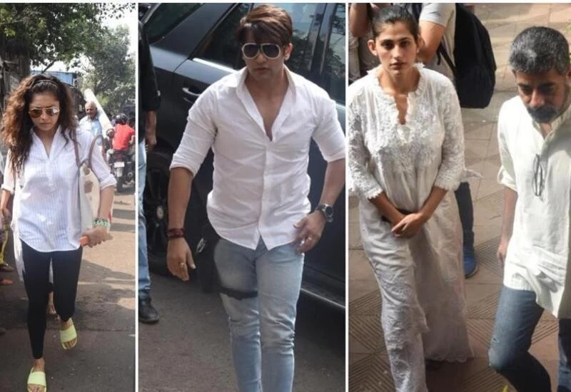Among those spotted were actors Karanvir Bohra, Arjun Bijlani, Tanaaz Irani with her husband Bakhtiyaar Irani and his sister, Delnaaz Irani. Actor Eijaz Khan was also present at the funeral, along with director and screenwriter, Ken Ghosh. Actors Drashti Dhami, popular for her role in Madhubala, was also seen at the funeral. Golmaal actor Vrajesh Hirjee was also present and so was model fashion model and TV host Diandra Soares. Sacred Games actor KubbraSait was spotted.