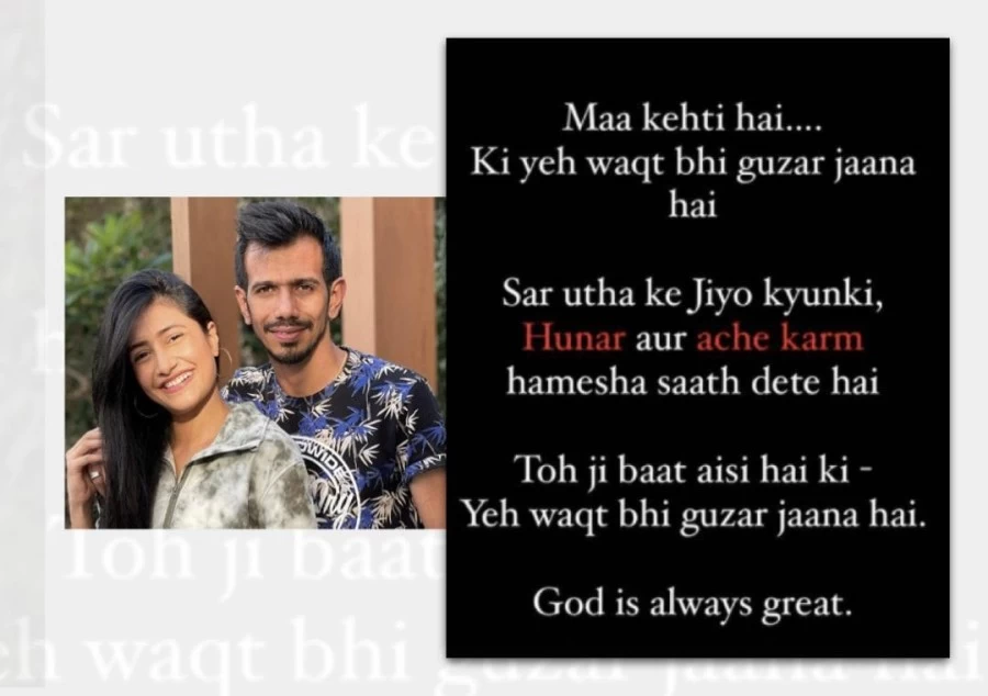 As India’s squad came on up on the table during the late hours of September 08, 2021, fans and supporters started questioning Chahal’s omission. In the same light of events, spinner’s wife and dancer Dhanashree Verma has come up with an indirect story on her official IG handle where she has talked about the hard times. She made a point in her post (related to Chahal’s exclusion) that this is probably the tough phase in their lives but even this will pass eventually and that God is always great.