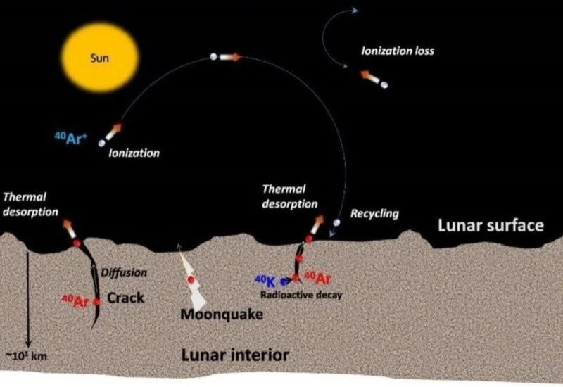 Argon is considered to be highly unreactive and is hence classified as a noble gas. It is one of the most abundant elements in the lunar exosphere as measured by the sensor instruments placed by the Apollo astronauts as well. Back in 1972, the Apollo-17 (last human landing on Moon) attempted to study the lunar atmospheric composition using a mass spectrometer. It detected Argon-40 and revealed that its abundance increases at times of high seismic activity as the fractures and faults allow it to escape.