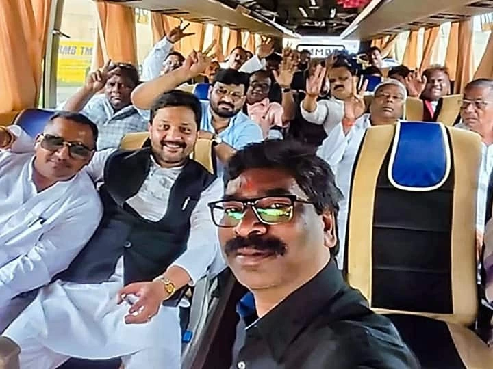 Jharkhand Politics: There is a tremendous political uproar going on in Jharkhand at this time. CM Hemant Soren along with his MLAs is returning from Latratu Dam to Ranchi by bus. The ABP reporter was the first to show the news of the MLAs returning by bus. Chief Minister Hemant Soren has also come out to fill all the MLAs in three buses. The entire security convoy of the Chief Minister has also come out with buses.