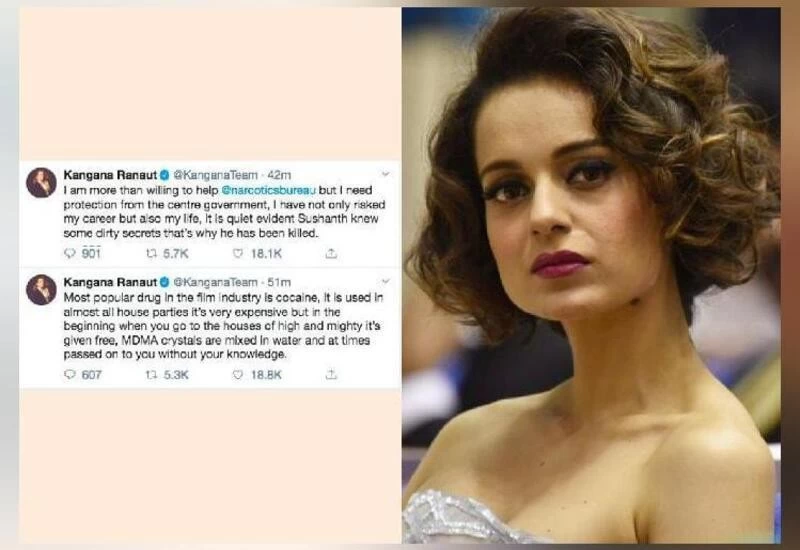 "Most popular drug in the film industry is cocaine, it is used in almost all house parties it's very expensive but in the beginning when you go to the houses of high and mighty it's given free, MDMA crystals are mixed in water and at times passed on to you without your knowledge," tweeted Kangana.