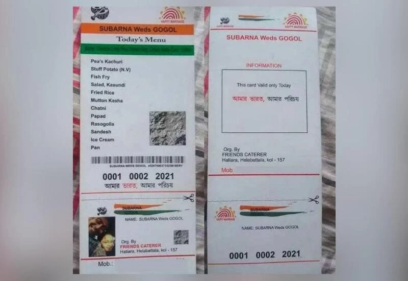 Kolkata: Couples tying the knot these days love to do something unique on their special day to stand out from the crowd, be it their wedding location, attire or something different with the invitation card. But, this Bengal couple left social media users as well as their guests in awe with their exceptional wedding menu card which was designed like an Aadhaar card.