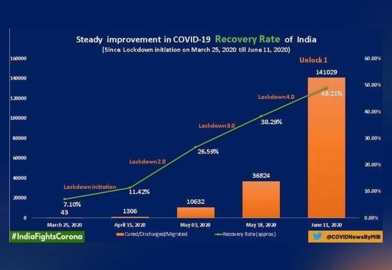 As on June 11 morning, India’s coronavirus recovery rate stands at a healthy 49.21%.