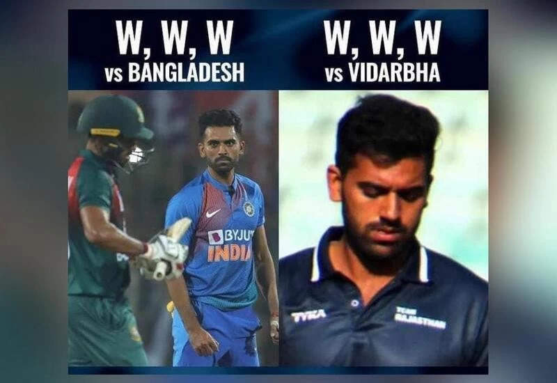 In the rain-hit contest between Rajasthan and Vidarbha, Chahar scalped four wickets to restrict the latter on 99/9 in 13 overs at the Greenfield International Stadium in Thiruvananthapuram.