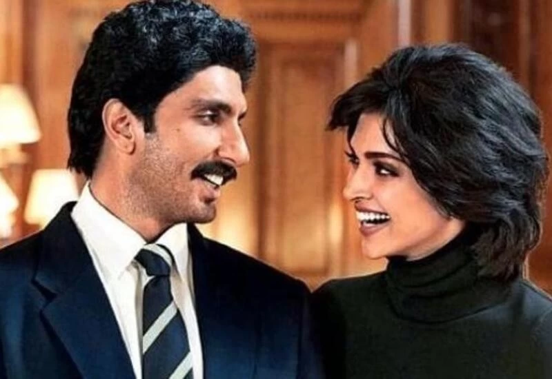 In the picture, Ranveer as Kapil and Deepika are looking at each other; while Ranveer looks relaxed, Deepika wears a big smile on her face. Her short bob hairdo, much like Romi’s, is the highlight of the picture. Deepika wears a black and cream ensemble while Ranveer is in a Team India blazer.