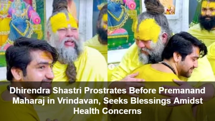 Pandit Dhirendra Shastri, the Peethadhishwar of Bageshwar Dham, made an unexpected visit to Vrindavan on Tuesday, where he met Premanand Maharaj at the Shri Hit Radha Keli Kunj Ashram. Premanand Maharaj has been unwell recently, suffering from a kidney ailment that requires dialysis five days a week, limiting his interactions with devotees. Shastri's visit was a personal one, not for any public event, aimed solely at seeking Maharaj's blessings and inquiring about his health. Upon arriving at the ashram, Dhirendra Shastri greeted the crowd and then prostrated himself before Premanand Maharaj as a mark of deep respect, while he enquired about Maharaj's well-being and engaged in a spiritual conversation with him.