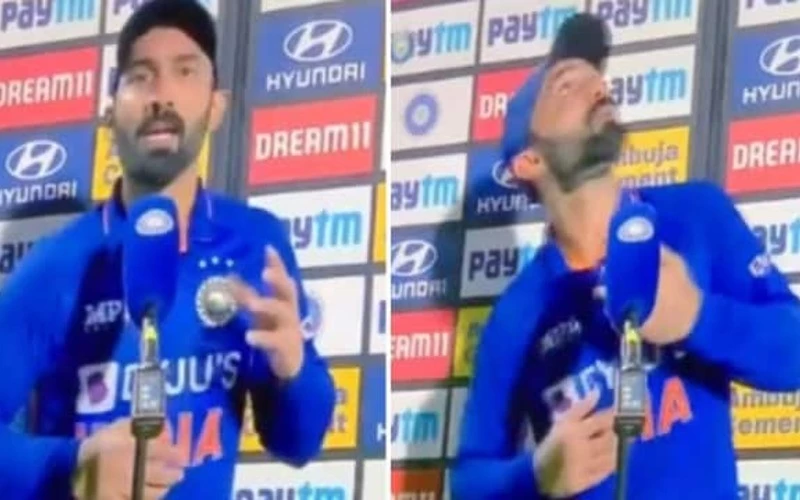After the end of the Indian innings, Dinesh Karthik, who played a tremendous innings, arrived to give an interview. While talking to the broadcaster, Karthik was answering the questions of the experts, during which he suddenly stopped while speaking and started looking at the sky. At this time he looked quite surprised and upset. Then he calmly said, "Sorry I thought the ball was coming this way".