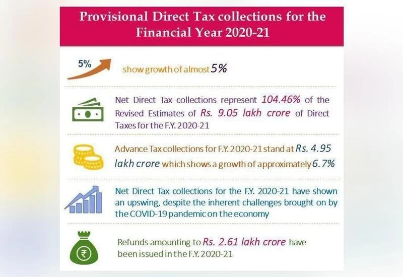 The total direct tax collection before adjusting for refunds for the FY21 stands at Rs 12.06 lakh crore, including corporation tax at Rs 6.31 lakh crore and personal income tax, including security transaction tax at Rs 5.75 lakh crore.