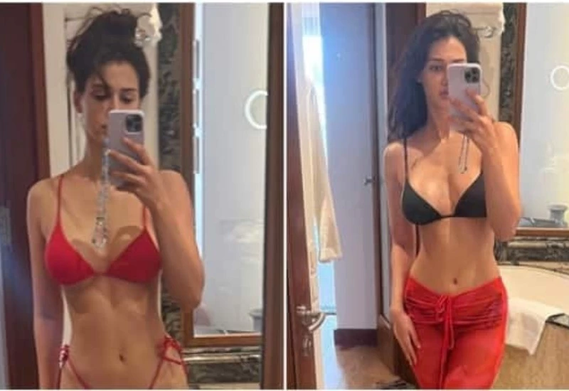 Disha Patani is sharing three pictures on Instagram. Disha Patani has shared these pictures from the bathroom. In Disha Patani's first mirror selfie, she looks quite sizzling in a black bikini top. In the second photo, Disha is wearing a red bikini top. Disha is looking very hot in both these photos. In the third picture, Disha is holding a rose. Fans are very fond of these photos of Disha Patani and are praising her a lot in the comment section.