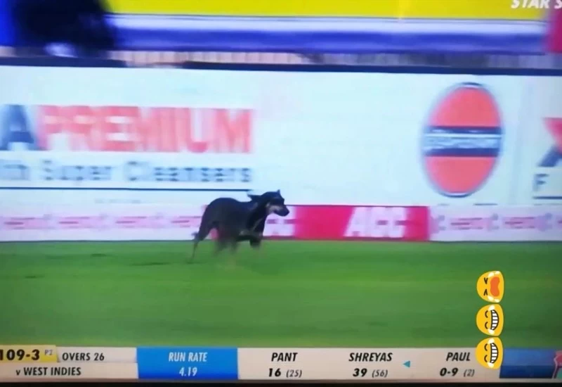 The onus fell on the likes of Shreyas Iyer and Rishabh Pant to rebuild the innings. And just when the duo was going about its job, a bizarre incident took place. The dog broke through the security to enter the stadium before the start of the 27th over of the innings. A security official ran behind it but the dog was winning the race hands down and it also presented an entertaining moment to the crowd.