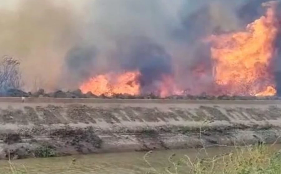 Hundreds of trees standing on the banks of the Indira Gandhi canal in Bajju, Bikaner, caught fire on Sunday. The fire is so strong that it can reach up to three kilometers in a short time. The cause of the fire is believed to be high heat. The fire is between RD 923 to 930 of Indira Gandhi Canal.