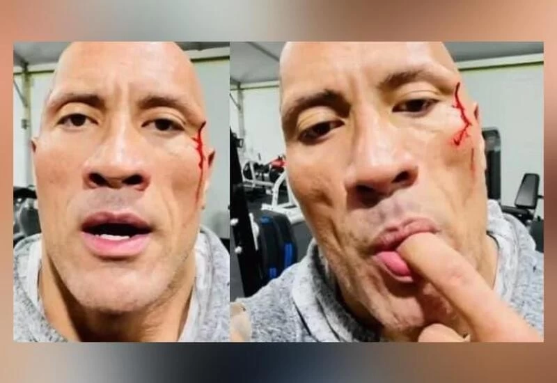 Hollywood Desk: Hollywood action star Dwayne Johnson sustains a face injury during a workout session, but that did not stop him from continuing his extremely intense regime.