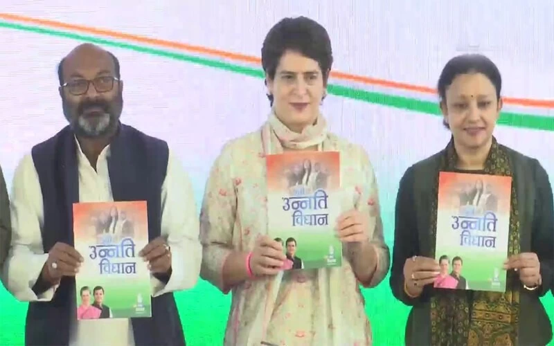 Priyanka Gandhi released the third manifesto of the Congress, which has been named Unnati Vidhan. Let us tell you that earlier the recruitment legislation was issued on 21 January and before that on 8 December the power legislation was issued. Announcements were made for women in the Shakti Vidhan issued on 8 December, while 20 lakh jobs were promised in the recruitment legislation issued for the youth on 21 January.