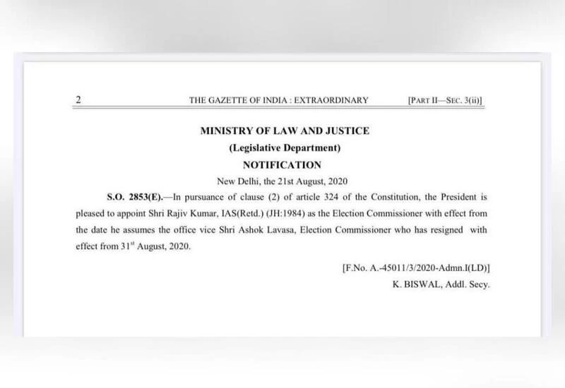 Kumar, a 1984-batch Jharkhand cadre retired IAS officer, has been appointed in place of EC Ashok Lavasa who resigned from the post Tuesday, the Ministry of Law and Justice said in a notification. Outgoing EC Lavasa has been appointed vice-president of Asian Development Bank. Kumar will assume charge from August 31, the day Lavasa leaves office.