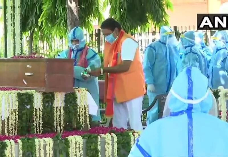 Mukherjee''s family and relatives paid their last respects clad in PPE kits while conforming to COVID-19 safeguards.